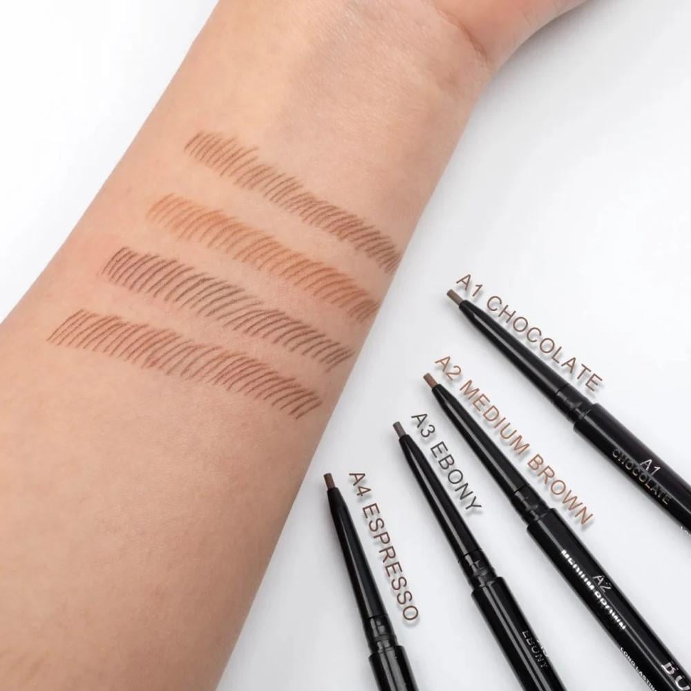 يوفر قلم الحواجب ذو الجانبين التوازن المثالي بين اللون القابل للبناء والتعريف