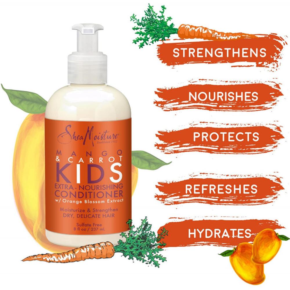 وصف المنتج: يعمل هذا البلسم على تنعيم شعر الأطفال وتلطيفه، مما يجعل من السهل فك تشابكه وحل عقده. تم مزج زبدة المانجو المرطبة وزيت الجزر لتقوية الشعر مع حمايته من التقصف وتعزيز نموه الطبيعى، يرطب الشعر الجاف و المجعد وينشط فروة الرأس ويعطى الشعر لمعان