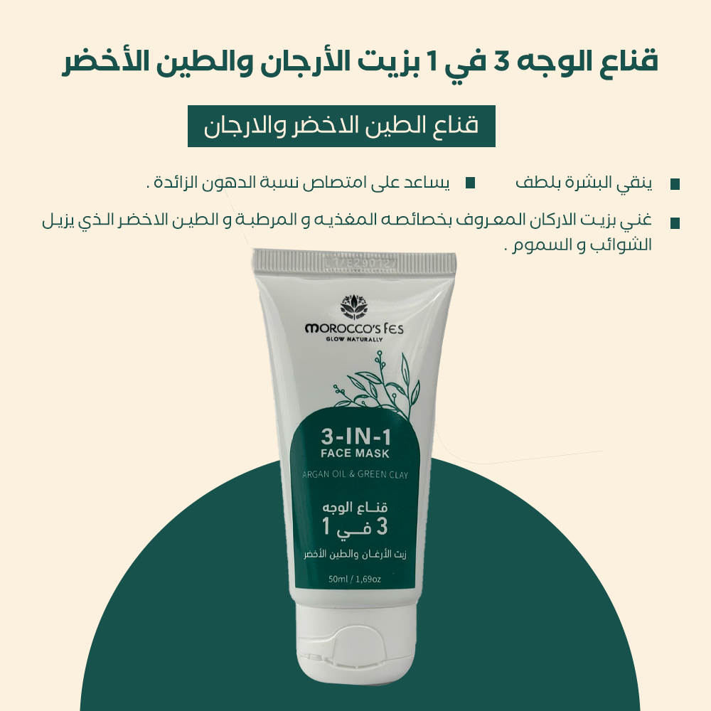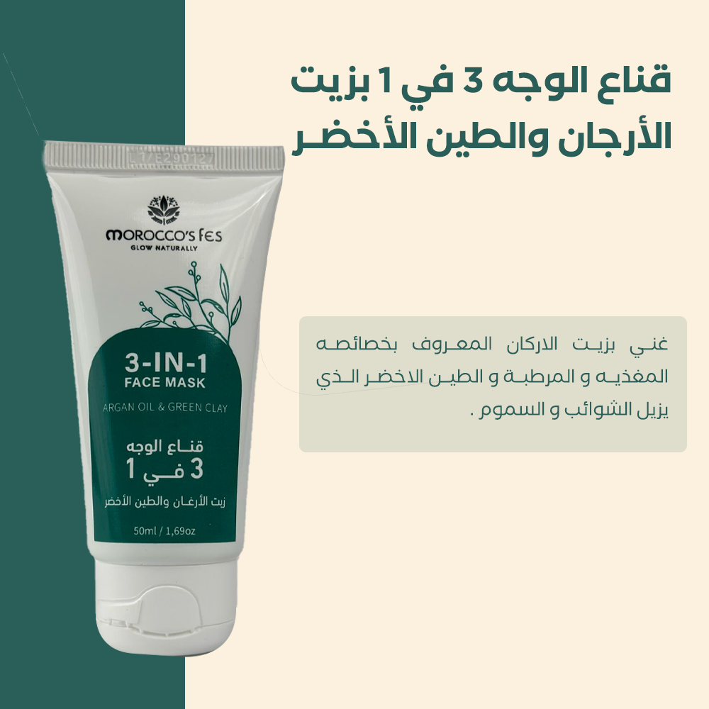 موروكو فاس قناع الوجه 3 في 1 بزيت الأرجان والطين الأخضر 50 مل