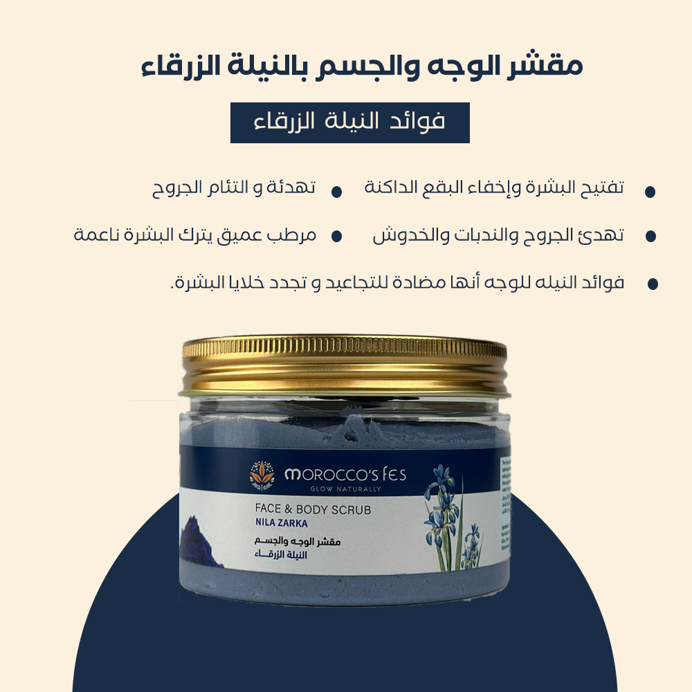 موروكو فاس مقشر الوجه والجسم بالنيلة الزرقاء 300 مل