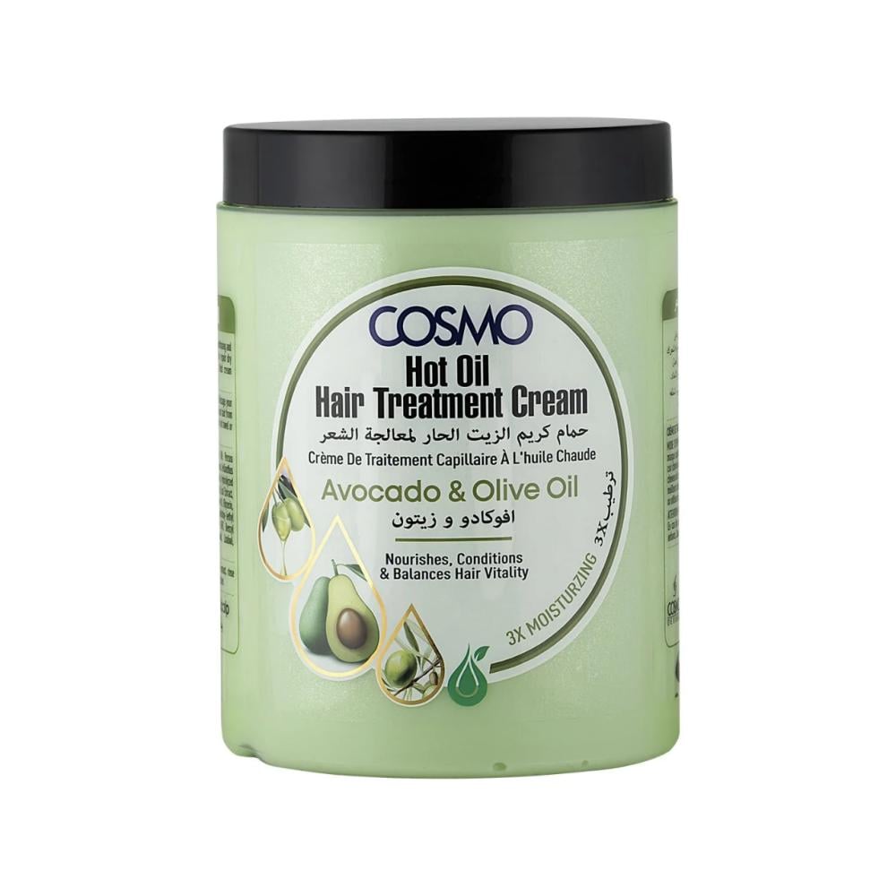 كريم علاج الشعر بالأفوكادو وزيت الزيتون الساخن من كوزمو: سر الشعر الصحي واللامع، حيث يمنحك ترطيباً عميقاً وتقوية استثنائية لشعر قوي وحريري.