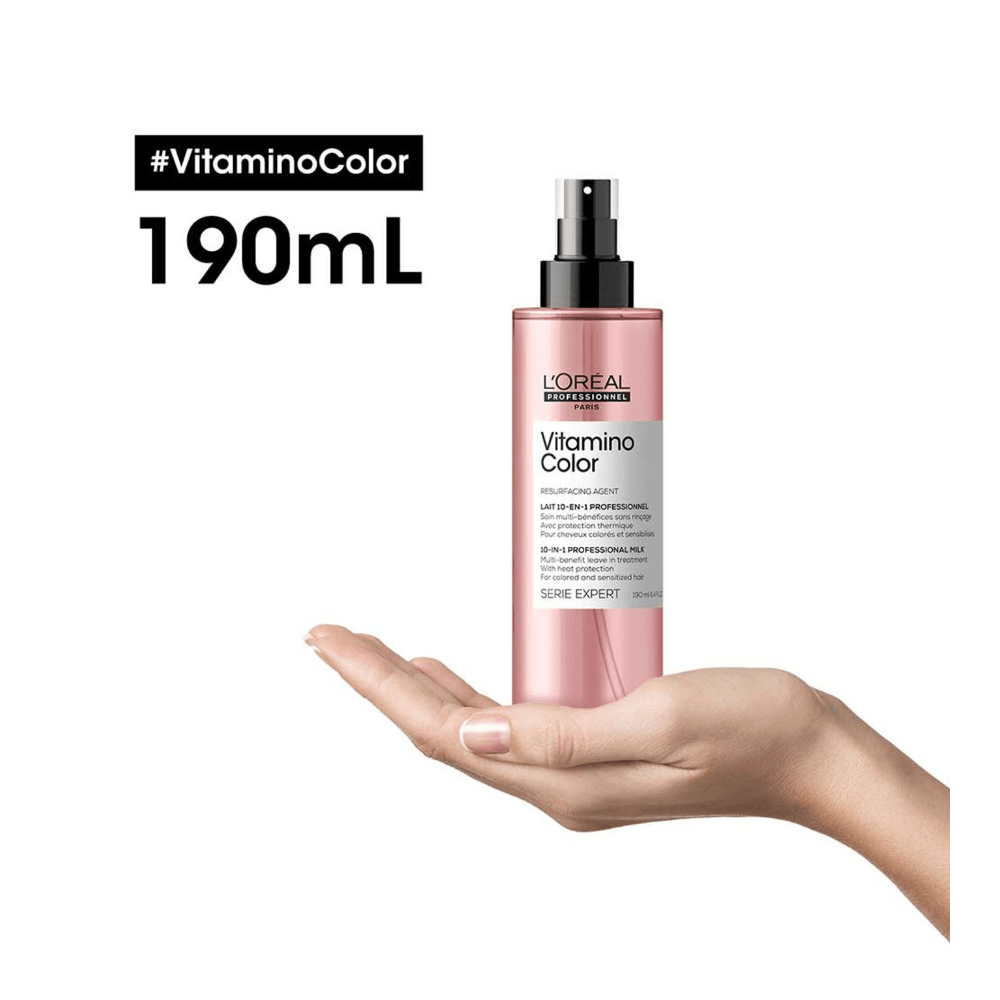 احصلي على شعر صحي ولامع مع بخاخ لوريال سيري إكسبرت فيتامينو كلر 10 في 1. تركيبته الغنية بالمكونات المغذية توفر عناية شاملة ومتعددة الفوائد لشعرك، بما في ذلك حماية اللون، الترطيب المكثف، الحماية الحرارية، والتغذية المكثفة. هذا البخاخ يضمن لك شعرًا أكثر قوة ونعومة ولمعانًا، مع حماية من العوامل البيئية وتسهيل عملية التصفيف. استخدميه بانتظام لتحصلي على أفضل النتائج.