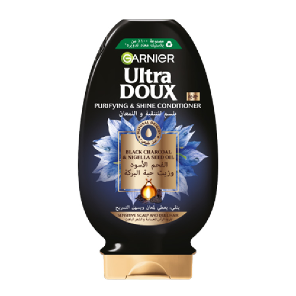 بلسم غارنييه الترا دوكس الفحم الأسود وحبة البركة يمنح شعرك نقاءً ولمعاناً طبيعيين من الجذور حتى الأطراف تميّزه تركيبة متوازنة.