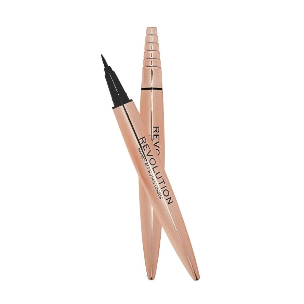 كحل سائل ريفولوشن رينايسانس فليك اسود يمنحك تحديداً حاداً مع لون أسود فائق الكثافة يدوم طويلاً. رأسه الدقيق يسهل رسم الخطوط بدقة لإطلالة أنيقة.