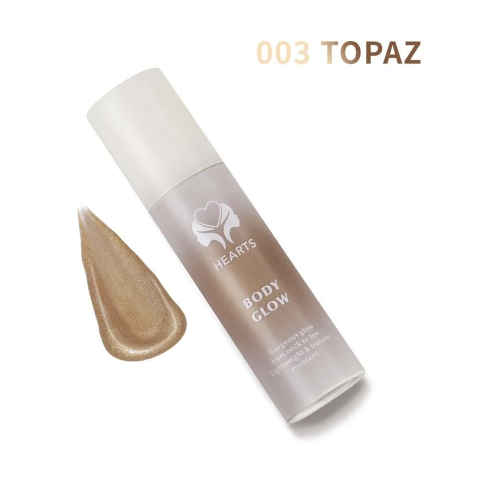 بودي جلو هارتس توباز 003 يمنح بشرتك إشراقة برونزية طبيعية تدوم طوال اليوم، بتركيبة خفيفة الوزن ومقاومة للانتقال تضيف لمسة جمالية متألقة تناسب جميع الإطلالات.