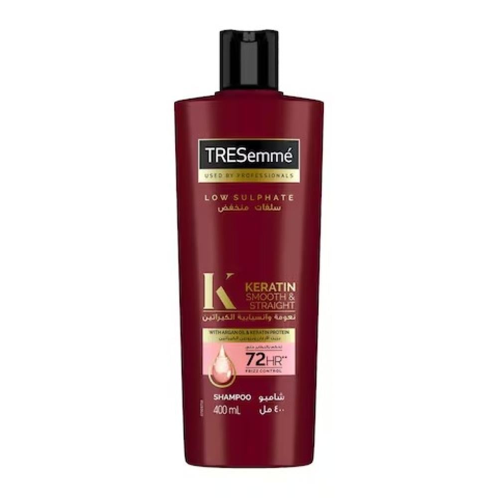 - TRESemmé Keratin Smooth & Straight Shampoo helps control frizz while adding shine.