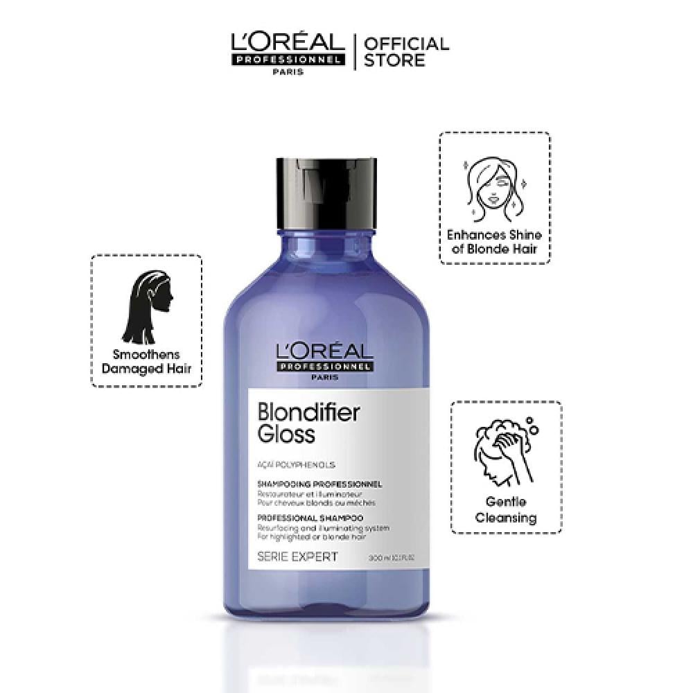 For colored and processed blonde hair . L'Oreal Serie Expert Blondifier Shampoo is specially designed to care for blonde or highlighted hair. This professional shampoo contains acai polyphenols that soften and nourish the hair, enhancing its natural shine and giving it a healthy and vibrant appearance.