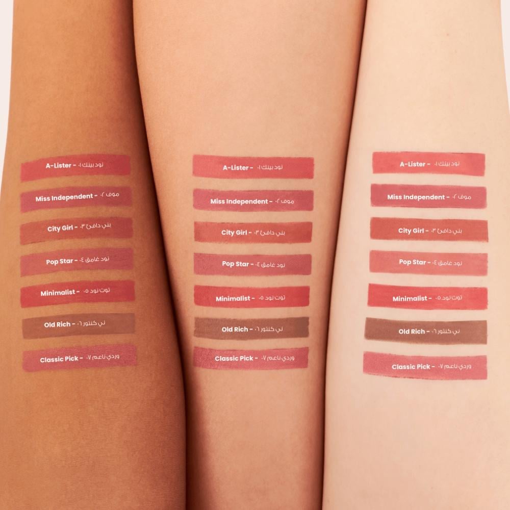 It features a creamy formula that glides smoothly on the lips, giving you a matte finish and perfect definition.