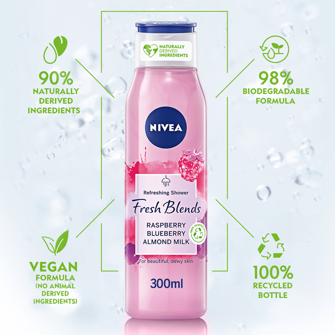 Nivea Fresh Blends Refreshing Shower Gel with Raspberry, Blueberry and Almond Milk Extracts 300ml: